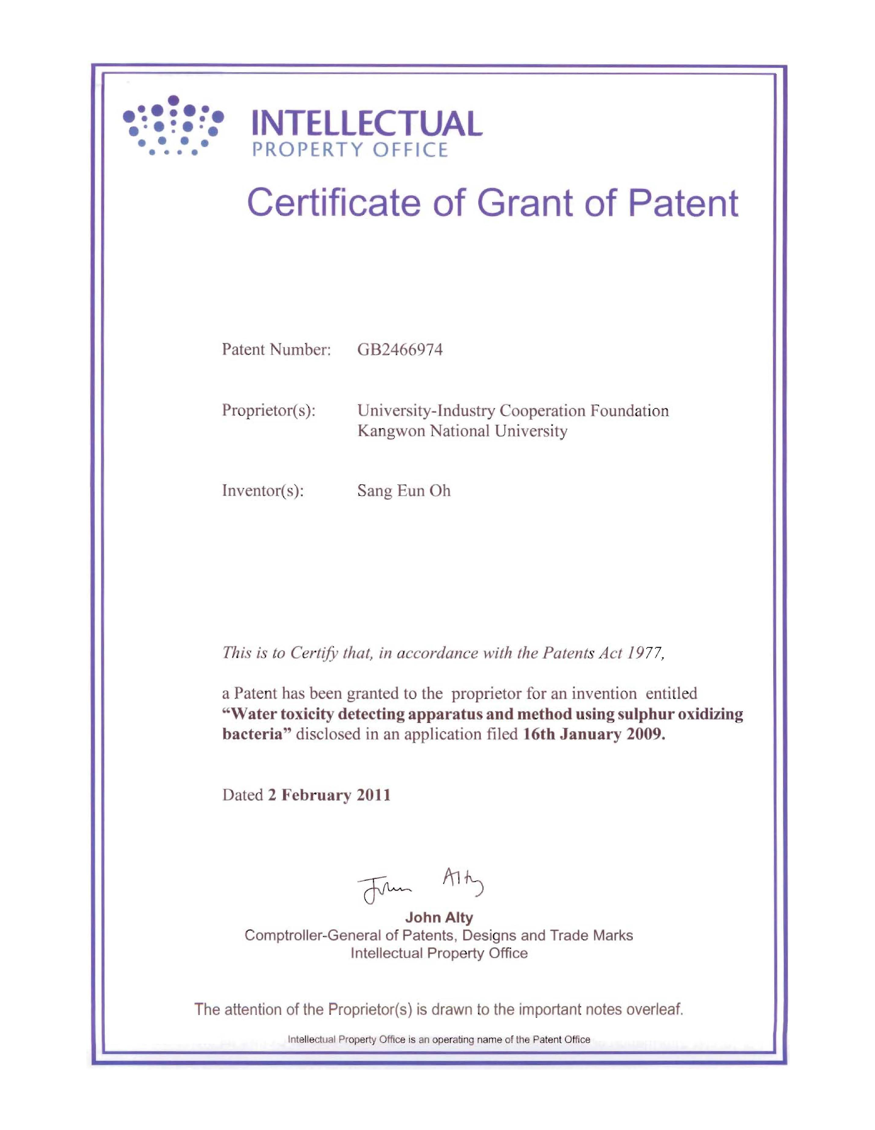 Patent No. : GB2466974
