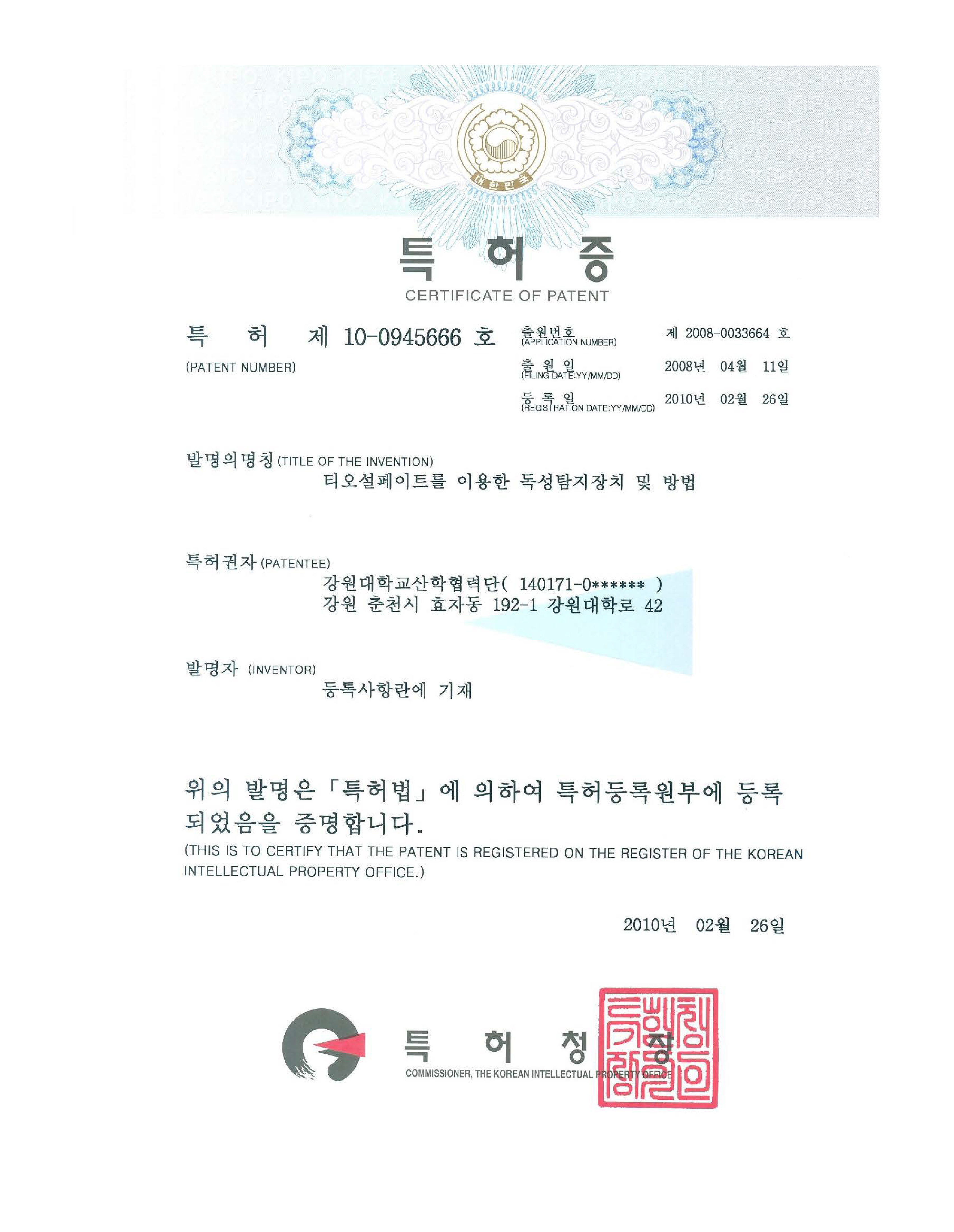 Patent No. : 10-0045666